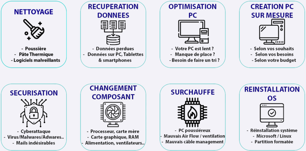 J’offre des services informatiques adaptés aux besoins des particuliers, des professionnels et des associations.